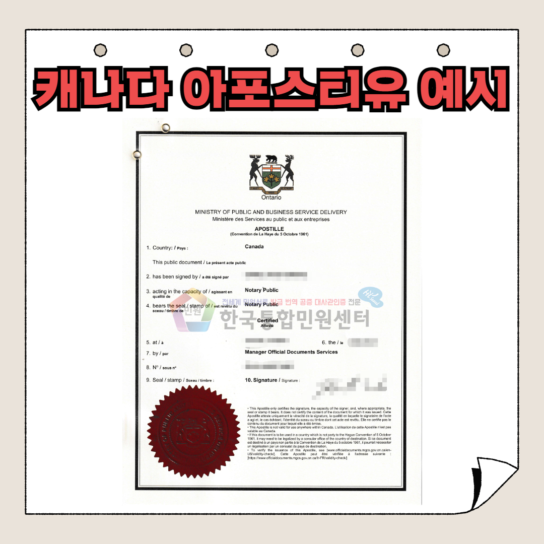 캐나다 현지에서 발급받은 아포스티유 서류 예시입니다!