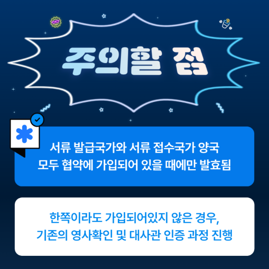 여기서 아포스티유 협약이란, 각 국가 간의 공문서 인증 절차를