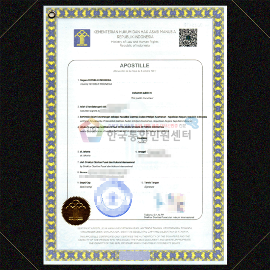 한국과 인도네시아의 아포스티유 인증은 아래와 같습니다.