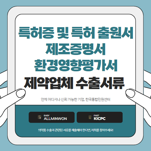 오늘은 특허증 및 특허 출원서, 환경영향평가서, 제조증명서에 대해 설명을 해드릴 텐데요