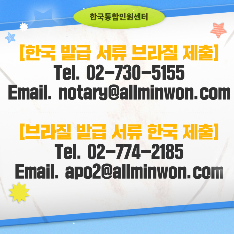 하지만 한국과 브라질 간 서류 발급 / 제출을 위해서는