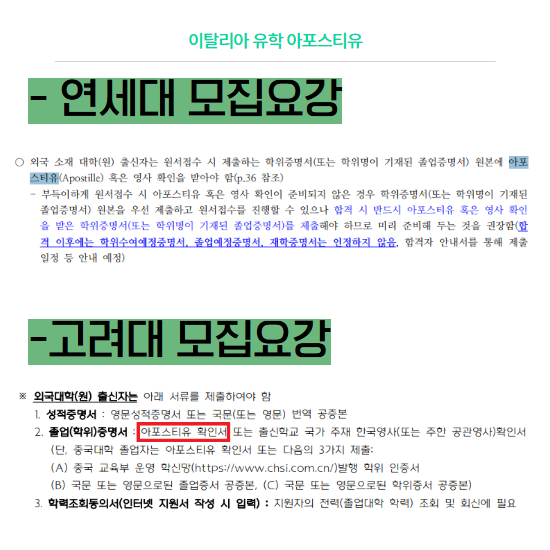 이탈리아 유학 후 한국 대학원에 진학하려는 사람들도