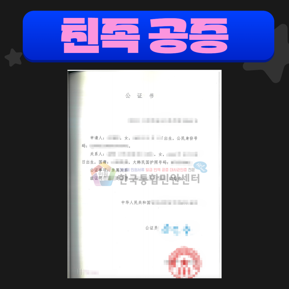 중국 현지 친족공증서류 예시본 입니다:)