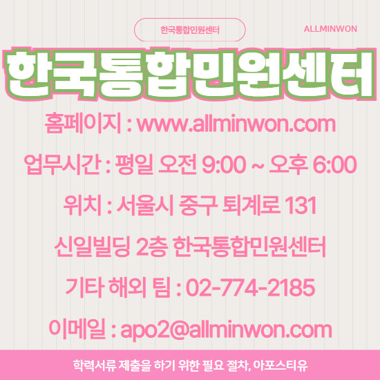 원본 서류에 아포스티유가 필요하신 경우 사전 문의 필수입니다