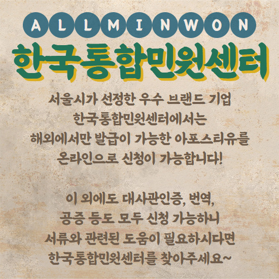 특별히 원본 서류 자체에 아포스티유가 필요한 경우에는 사전에 문의 주세요
