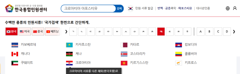 2. [크로아티아 아포스티유] 검색하기