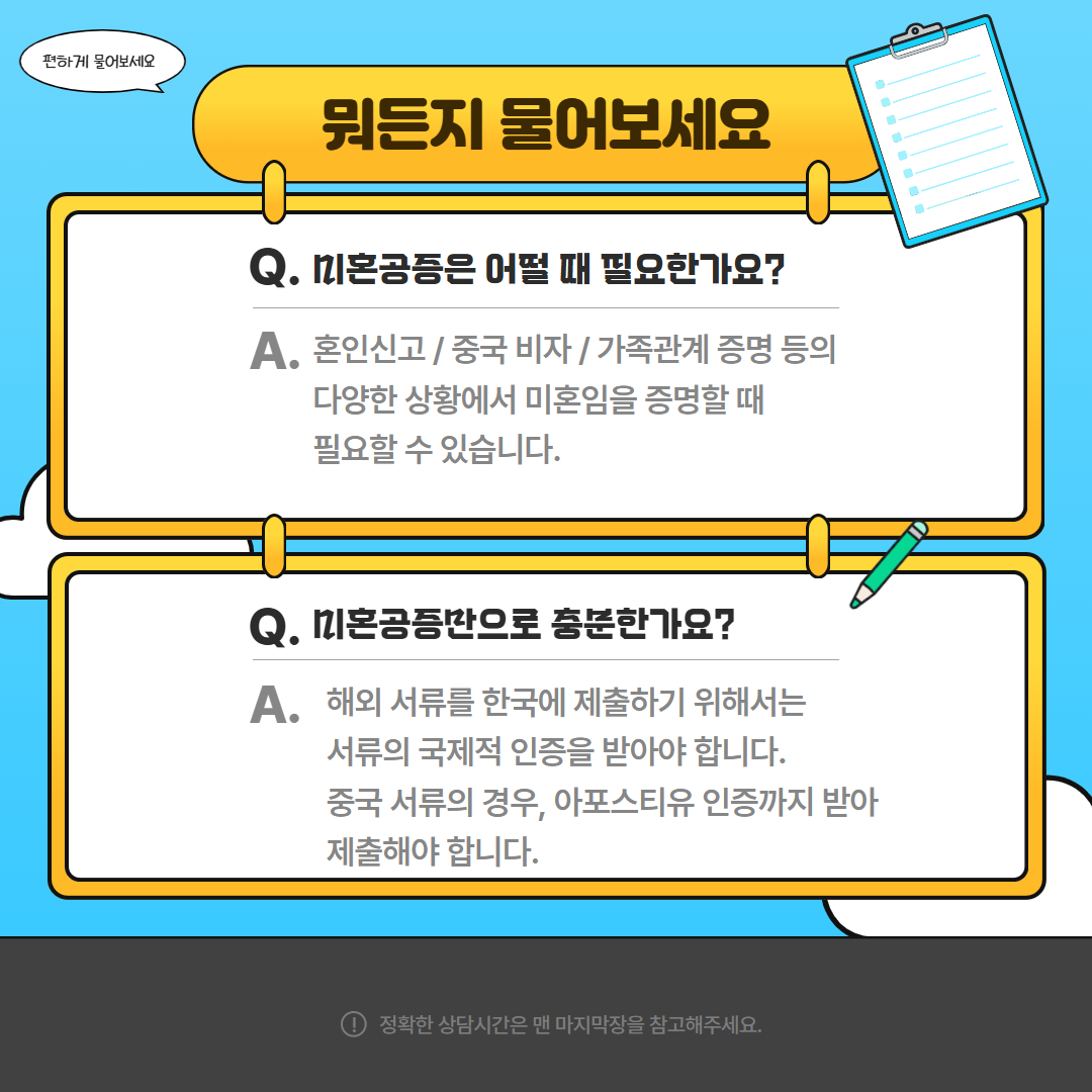 미혼 공증을 받는 경우가 많습니다!