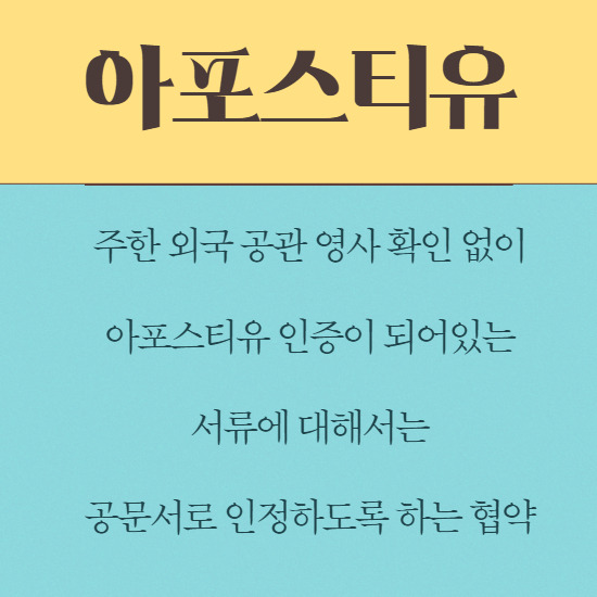 협약을 맺게 되면서 번거로운 절차가 아포스티유 하나만으로 해결할 수 있게 되었습니다