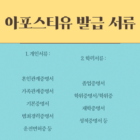 아포스티유를 받아야 하는 서류는 정해져있지 않습니다