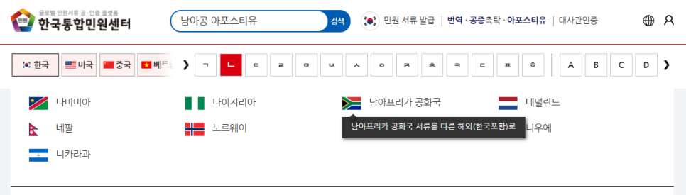 - [남아프리카 공화국 아포스티유] 검색하기