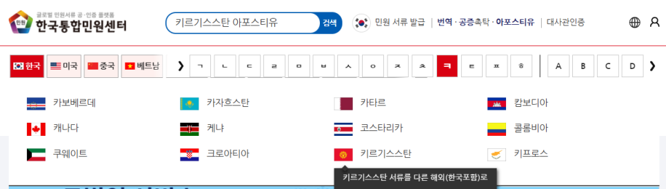 - [키르기스스탄 아포스티유] 검색하기