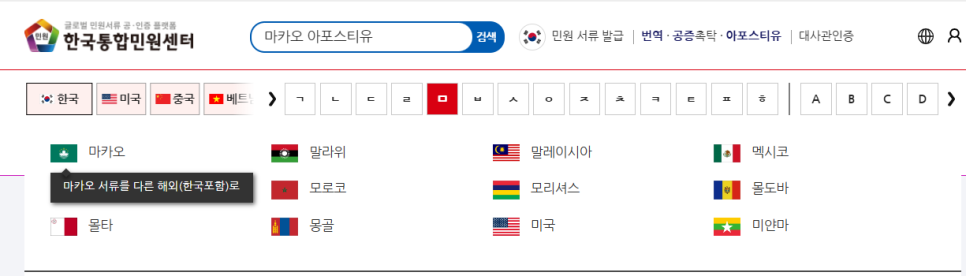 - [마카오 아포스티유] 검색하기