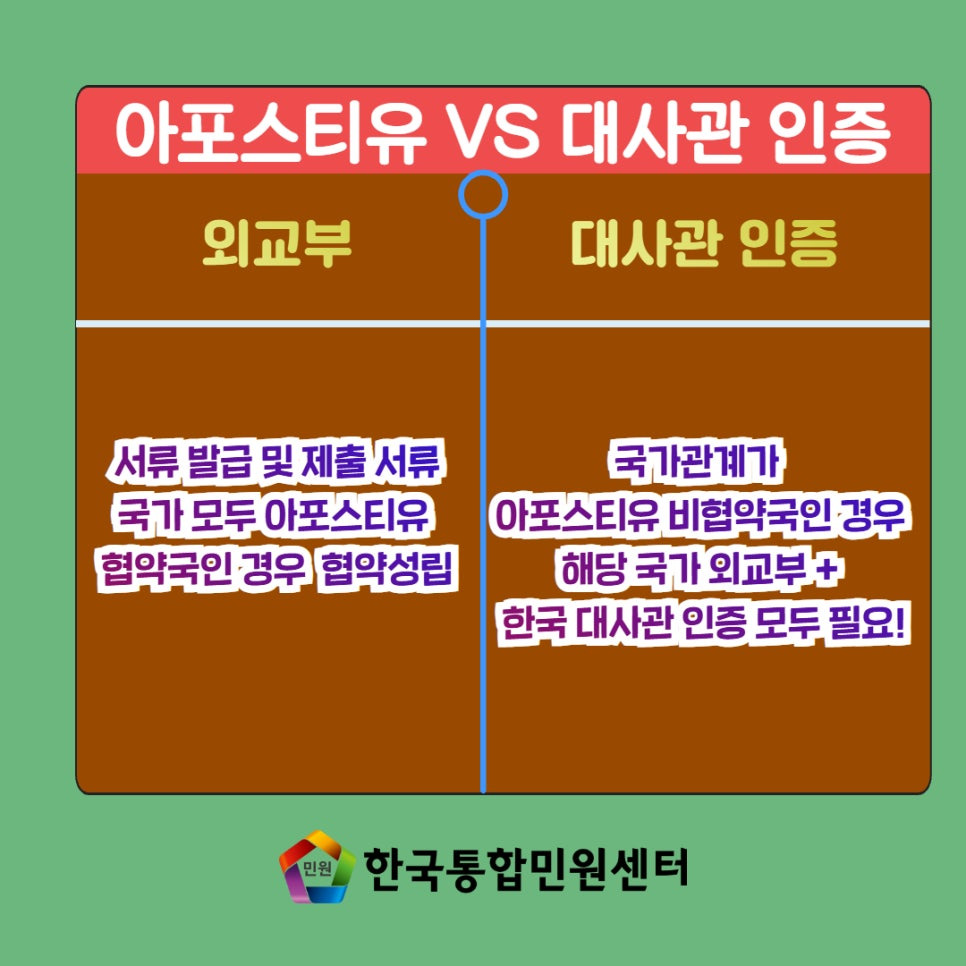 만일 아포스티유 인증이 없을 시 서류 제출 반려나 심지어 서류제출을 거절할 수 도 있습니다.