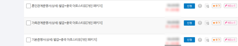 2. [혼인관계증명서 or 가족관계증명서 or 기본증명서] 검색 or 상단 국가 [중국] 배너 클릭