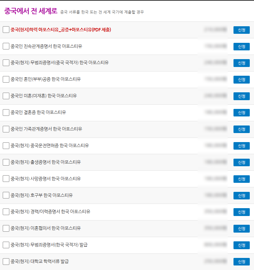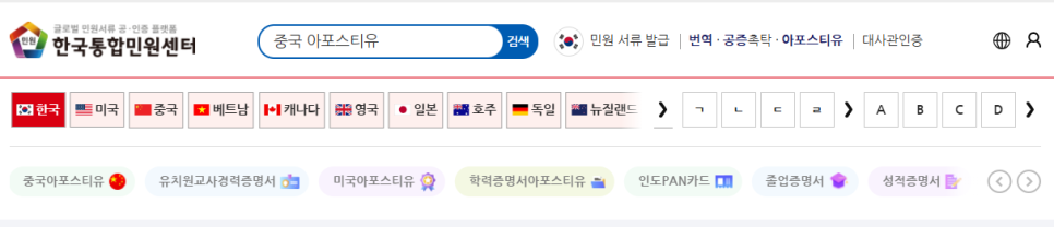 2. [중국 아포스티유]를 검색해 주세요