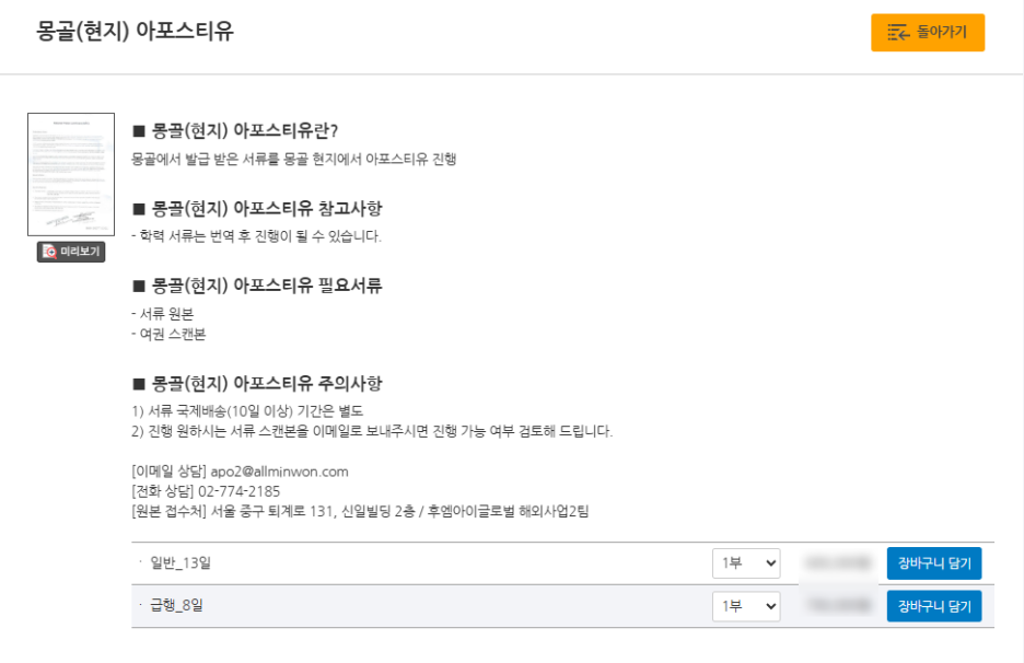 그래서 바로 몽골이 아포스티유 협약국 !!