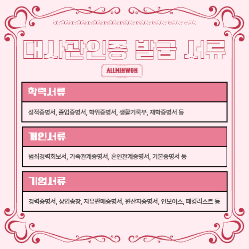 제출에서 요구한 모든 서류에 대사관인증을 받아주셔야 합니다