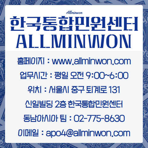 언제든지 한국통합민원센터(주)를 통해 해결해 보시기 바랍니다