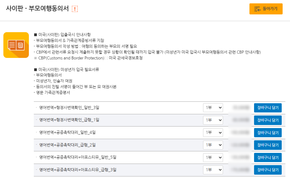 부모여행동의서를 미리 준비하셔야 합니다!