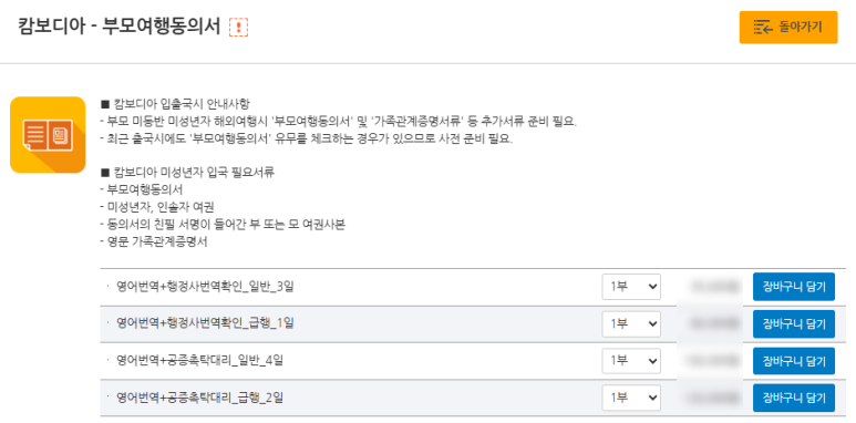 한국통합민원센터는 캄보디아 포함 여러 국가의 부모여행동의서를