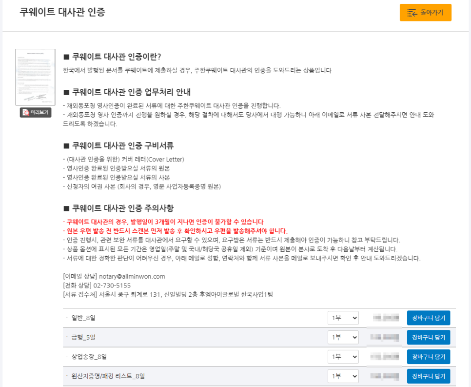 쿠웨이트 제출용 서류의 인증이 필요하시다면