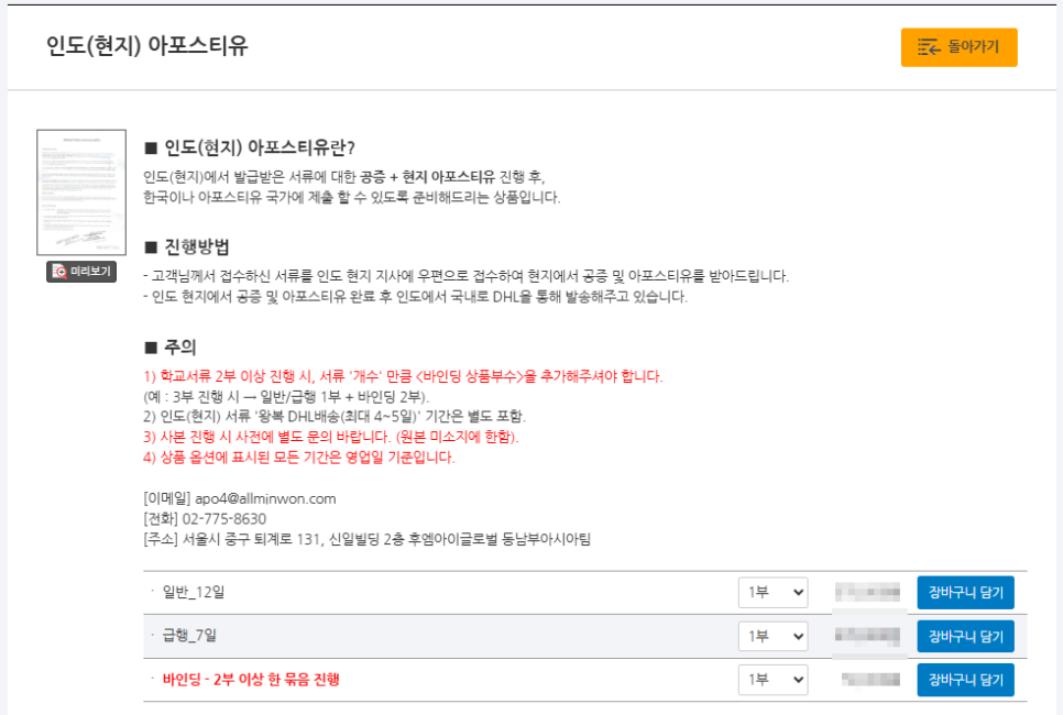 2. [인도 아포스티유] 검색 or 상단 국가 [인도] 배너 클릭