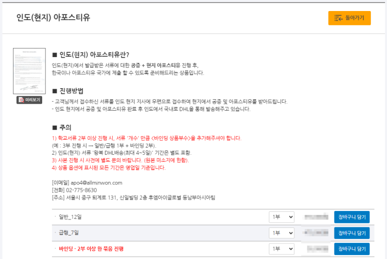 2. [인도 아포스티유] 검색 or 상단 국가 [인도] 배너 클릭