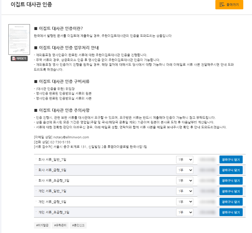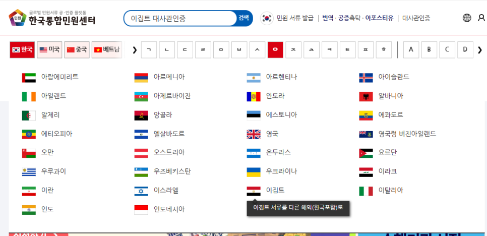 이집트 외에도 다른 국가의 대사관인증도 신청 가능하니