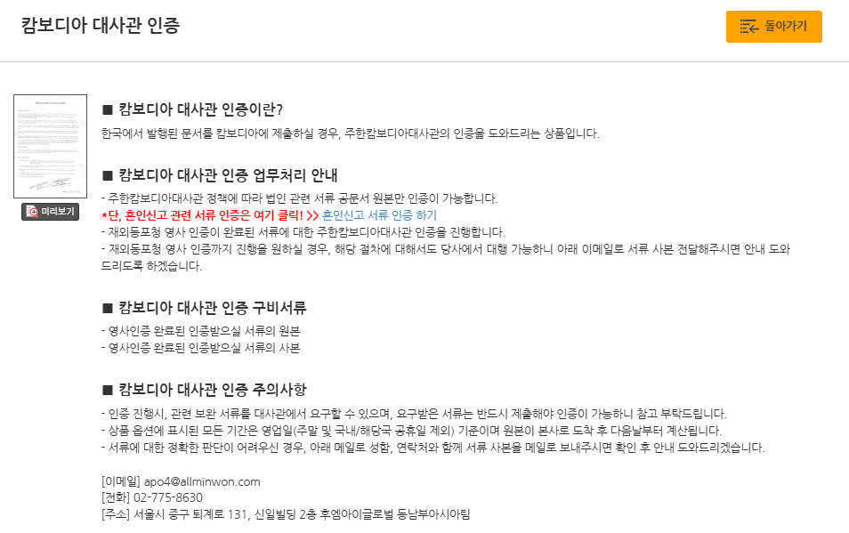 캄보디아 대사관 인증이 필요하다면