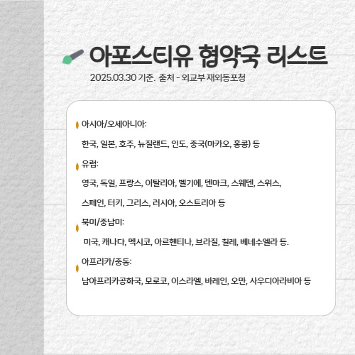 오늘 정리해 드린 2026년 최신판 아포스티유 협약국, 발효일 정리 내용을 참고하시어 서류 준비의 시행착오를 줄이시길 바랍니다.