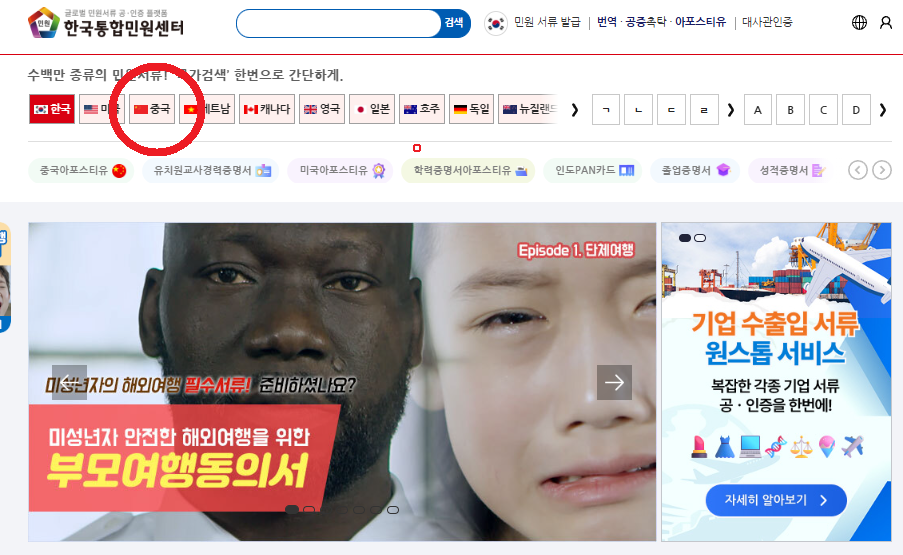 한국통합민원센터 중국사업팀(02-318-8868)은 중국 및 대만 관련 모든 서류 업무를 전담하고 있습니다.