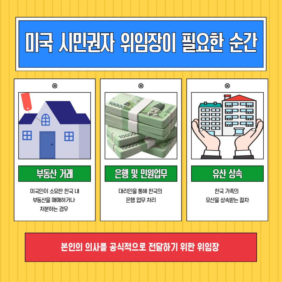 미국 시민권자가 한국에서 부동산 거래나 행정 업무를 위해 위임장을 준비하다 보면,