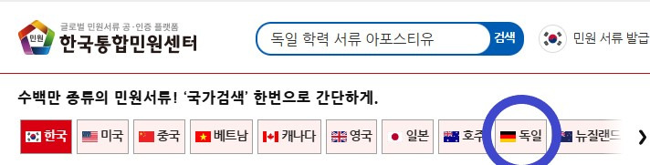 2. [독일 학력 서류 아포스티유] 검색 or [독일] 배너 선택