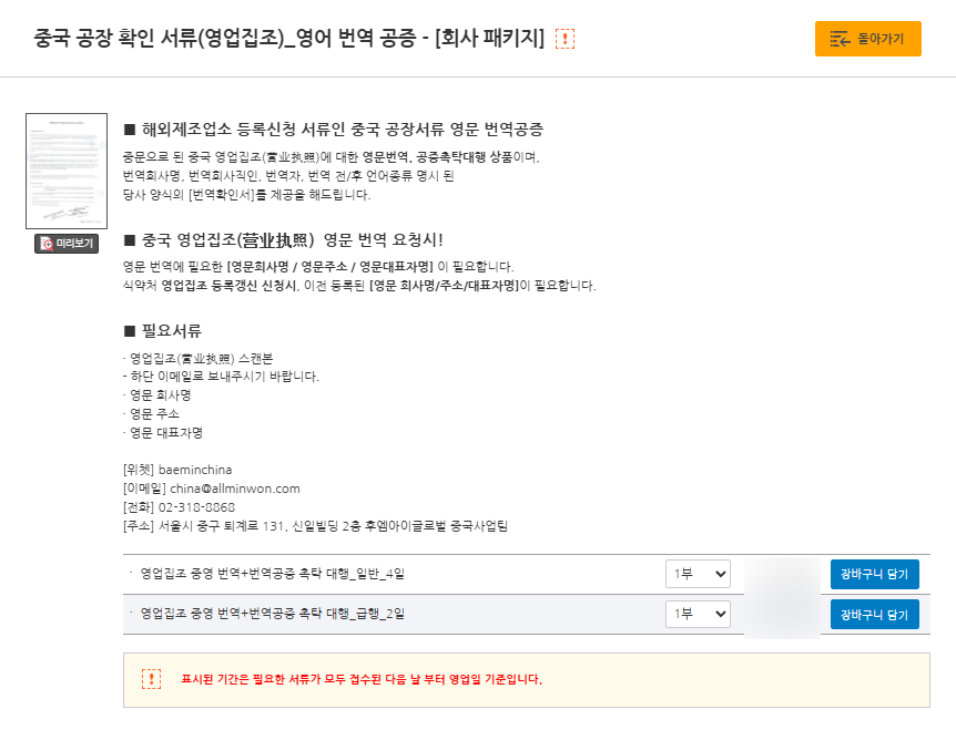 중국 현지에서 발급된 영업집조를 한국 제출처에 내기 위해서는